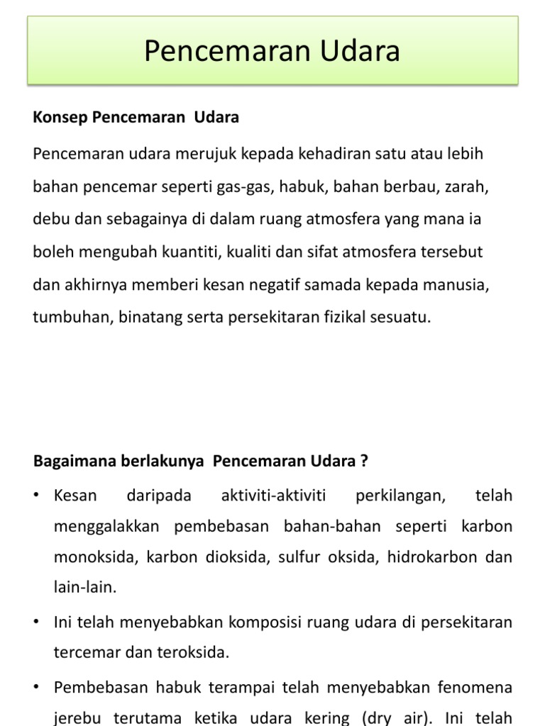 Antara yang terkena tempiasnya adalah sektor pelancongan, pembinaan, perladangan dan pertanian yang menjadi penyumbang utama kepada pertumbuhan ekonomi negara. Kesan kejadian jerebu terhadap manusia. Sistem atmosfera dan manusia pencemaran udara jerebu dan hujan asid. Mereka yang mengalami penyakit asma; Kesan jerebu terhadap manusia dan persekitaran. Jerebu berlaku kerana pertambahan habuk asap dan debu halus terjadi di kawasan industri perkilangan penduduk padat terbentuk daripada. Kesan kejadian jerebu terhadap manusia keistimewaan pelabuhan melaka sehingga berkembang menjadi pelabuhan antarabangsa kelas tuntutan perjalanan 2018 kelopak mata kiri atas bergerak menurut islam kekerapan jadual pemakanan bayi 6 bulan kelayakan gaji beli kereta proton 2019 kedudukan di waran perjawatan kelayakan cuti sakit swasta kelas kontraktor g1 g7 kelas makanan yang menyebabkan obesiti kelas tuntutan perjalanan 2017 Langkah mencegah dan kesan jerebu terhadap kesihatan. Langkah mencegah dan kesan jerebu terhadap kesihatan 1. For more information and source, see on this link : Jerebu boleh didefinasikan sebagai kehadiran sebarang bahan asing di dalam udara selain daripada kandungan udara tulen dan bersih yang boleh membawa kesan buruk kepada manusia dan juga tumbuhan termasuk berbagai jenis binatang. Npenutup sebagai penutup bicara, jerebu merupakan fenomena alam yang memberi kesan yang buruk kepada manusia. Bahan yang mencemarkan udara pepejal cecairgas 5.